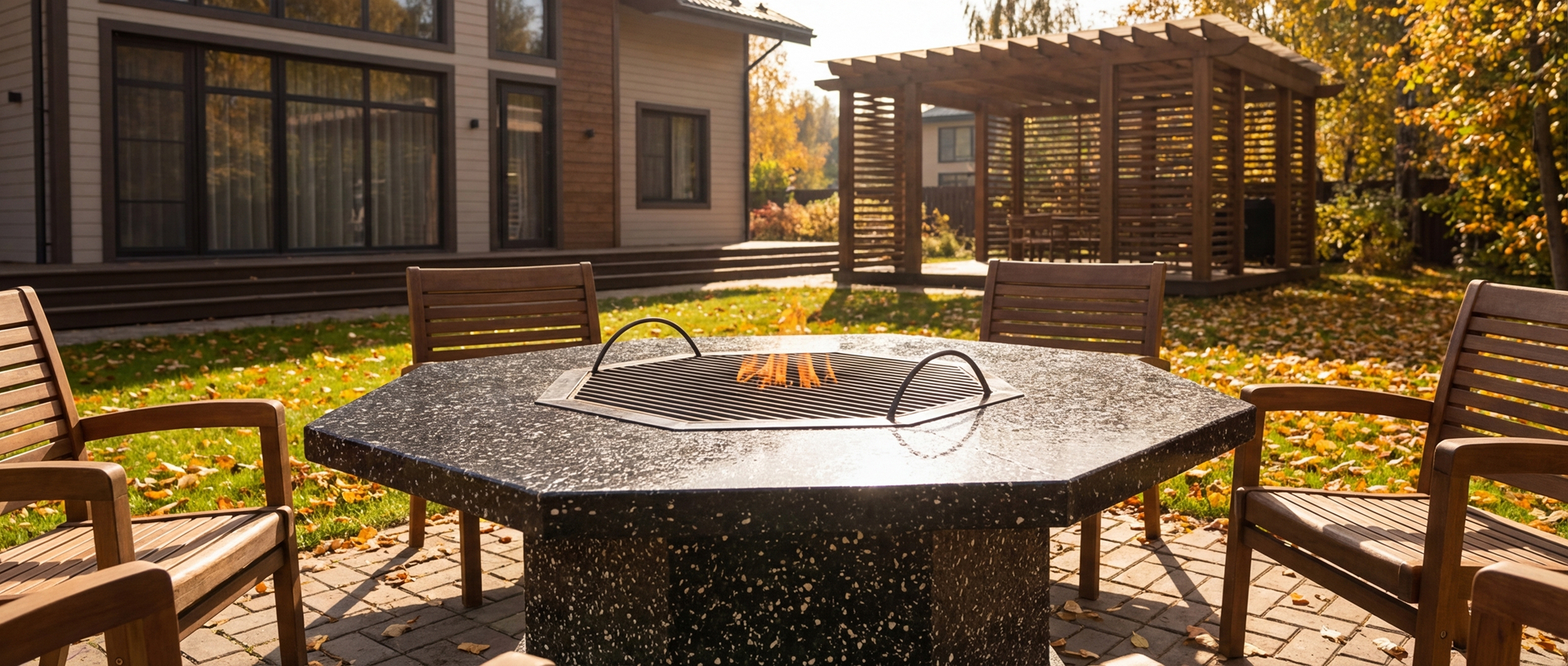 Хотите создать уютную зону для готовки еды на улице и наслаждаться барбекю в любое время года? Гриль-столы из натурального камня от производителя ЛюксБетон.рф – удачное решение вашей уличной кухни!
